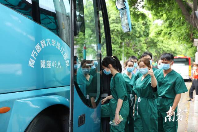 5月27日一早,广东药科大学附属第一医院首批共15名医护人员从医院出发,前往支援荔湾区核酸采样工作,目前已投入紧张的采样工作中。据悉,该支援队最小的队员仅22岁,平均年龄不超过28岁,是一支朝气蓬勃的队伍。