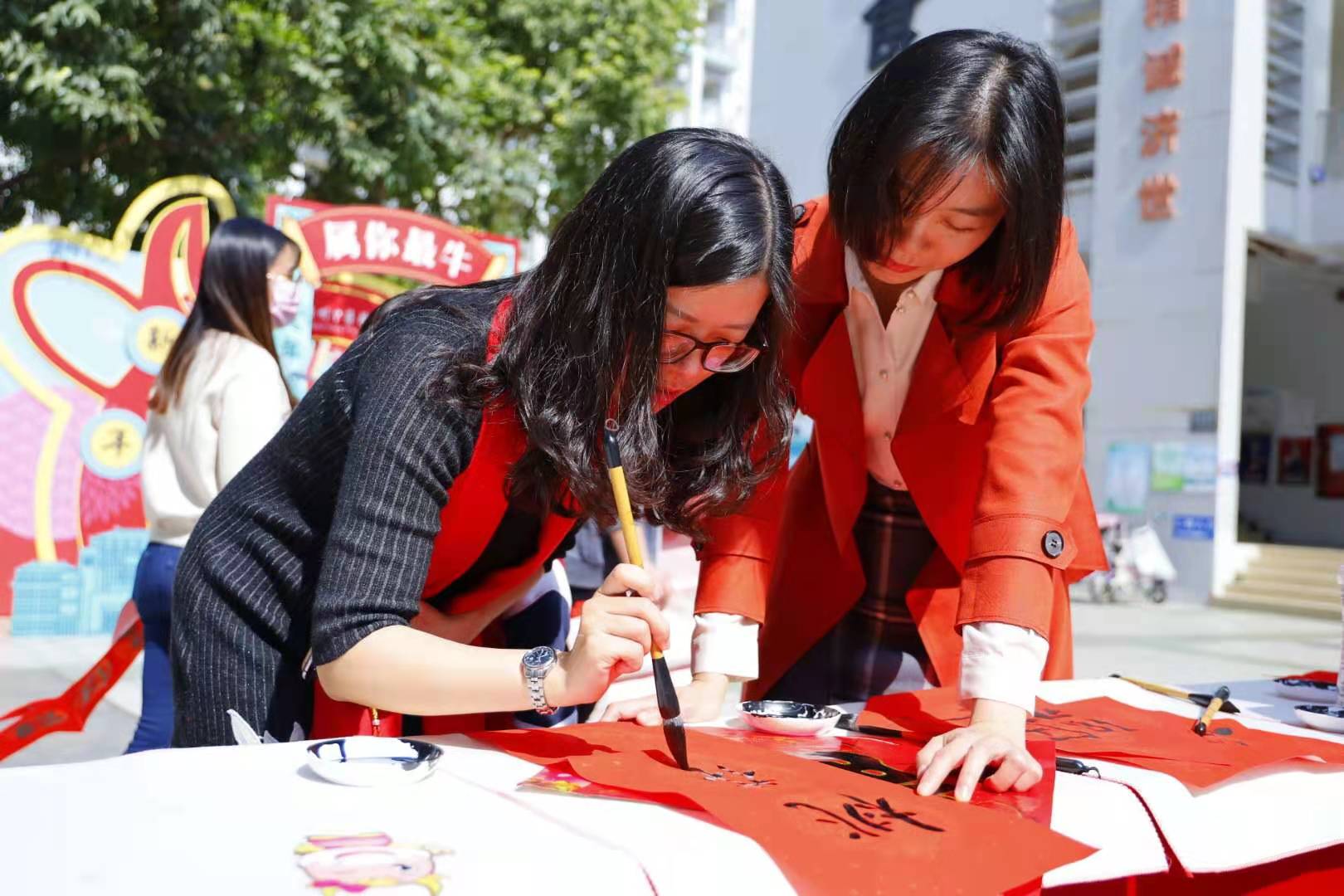2月3日,恰逢立春,也是taptap点点“杏林团圆年”系列活动的第一天。学校生活区装扮一新,可爱的大型年味布景前,同学们正在举办“杏林年味铺”活动,写春联、领福字、抽大奖……现场一片欢乐,俨然已经是过年的气氛。