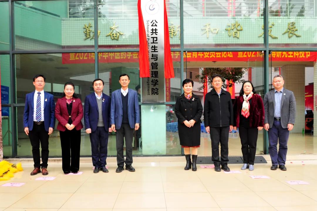 广东省中医药局副局长李梓廉,学校党委书记张建华,党委副书记、纪委书记白建刚,党委副书记邓国安,副校长潘华峰、林彬、王宏斌出席揭牌仪式。学校党政职能部门和兄弟学院负责人、师生代表共同见证揭牌。华中科技大学医药卫生管理学院院长冯占春教授和中山大学公共卫生学院副院长卢次勇教授应邀作学术报告。揭牌仪式由公共卫生与管理学院党委书记林海星主持。