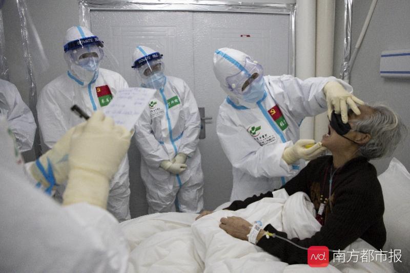 广中医副校长张忠德在武汉抗疫期间,为新冠患者做检查