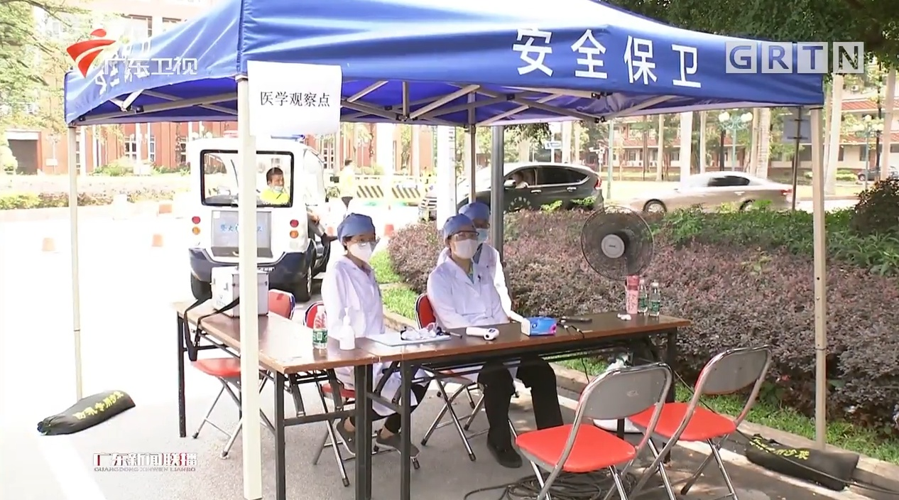 在广州医科大学番禺校区,今天(5月11日)迎来第一批174名返校学生。在完成身份核查与行李消毒后,学生需要在报到处接受核酸检测,并由专车送回宿舍等候结果。待检测结果为阴性后,才能在校园自由活动。
