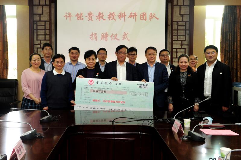 面对严峻的疫情防控形势,团队全体成员一致同意将该笔奖励全部捐赠给学校用于疫情防控相关工作。在捐赠仪式上,许能贵表示,获得国家科技进步二等奖离不开学校的支持。大疫当前,团队成员响应党中央号召以行动支持疫情防控,怀着对学校的感激之情与感恩之心,将学校党委给予的奖励全部捐赠给学校基金会,希望能对学校新冠肺炎疫情防控工作起到积极推动作用,帮助打赢这场抗疫攻坚战。
