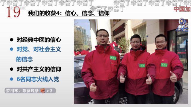 谈及此次战“疫”的感想,颜芳有四个收获:一是拯救了生命、证明了中医、收获了疗效;二是经历了一次极其珍贵的锤炼,大家都获得了成长;三是再次为自己是中国人而感到由衷的骄傲与自豪;四是更加坚定了对经典中医的信心、对党和社会主义事业的信念、对共产主义的信仰。