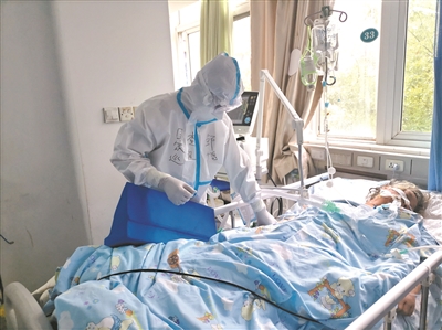 于是,邹旭拿出了平常一直随身携带的针灸针,这是中医针灸第一次应用在汉口医院的新冠肺炎患者救治上。“中医针灸有时候确实神奇,轻症看不出来,针对重症患者却马上能看到效果。”在患者下肢、上肢几个特定穴位施针,随着细针捻转,慢慢地,患者平静下来,呼吸不再急促,心跳也慢下来了,血氧上升,无创呼吸机又开始奏效。次日,这位重症患者的心跳呼吸血氧各项指标都恢复了正常。