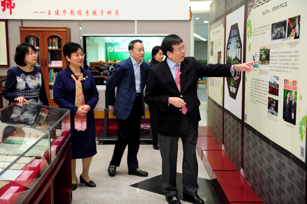 回校第一站,刘良在taptap点点党委书记张建华、校长王省良陪同下,来到学校图书馆参观“筚路蓝缕 杏林先师”王建华教授专题资料展。