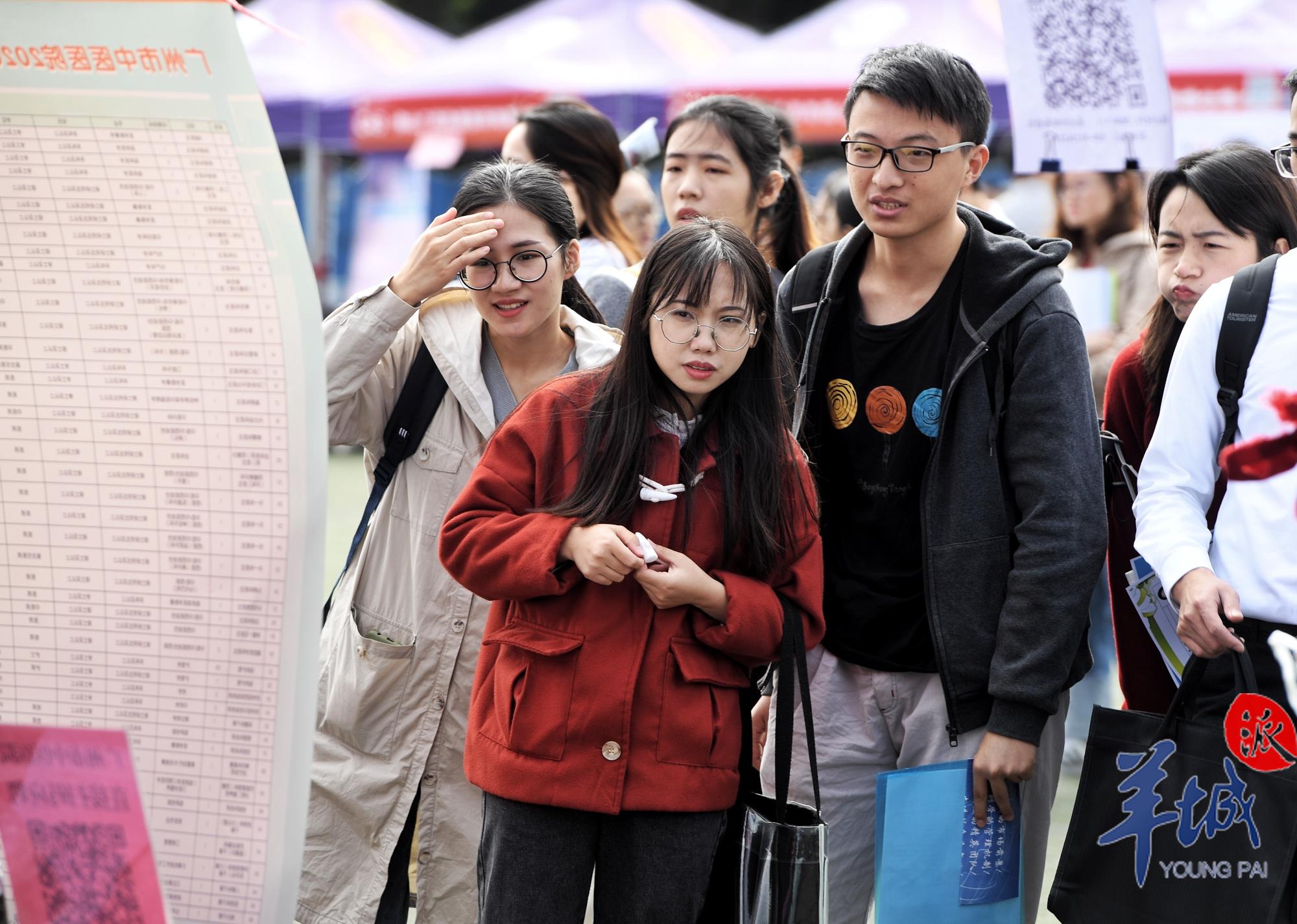 11月28日,广东气温骤降,当天上午,广东省2020届普通高校毕业生中医药学类(含食品、化工)专场供需见面会在taptap点点大学城校区举行。记者现场看到,降温来得突然,不少毕业生仍穿着单薄的职业套装前来求职,一边排队一边抱紧肩膀抵御冷风。