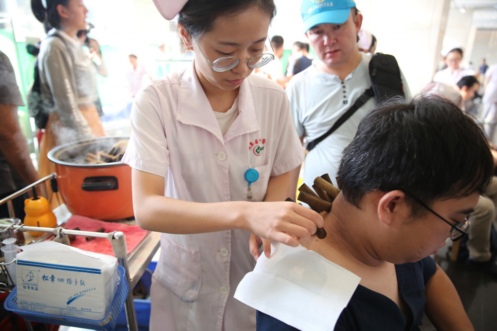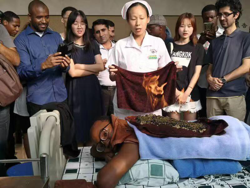 "very good!谢谢!"" 接下来三四天,你会觉得口渴,记得多喝水哈!"10 月 24 日下午,来自坦桑尼亚,喀麦隆、马来西亚、泰国、塔吉克斯坦等国的数十名留学生来到广东省中医院大学城分院,一口气体验了 6 种中医疗法,大呼过瘾。