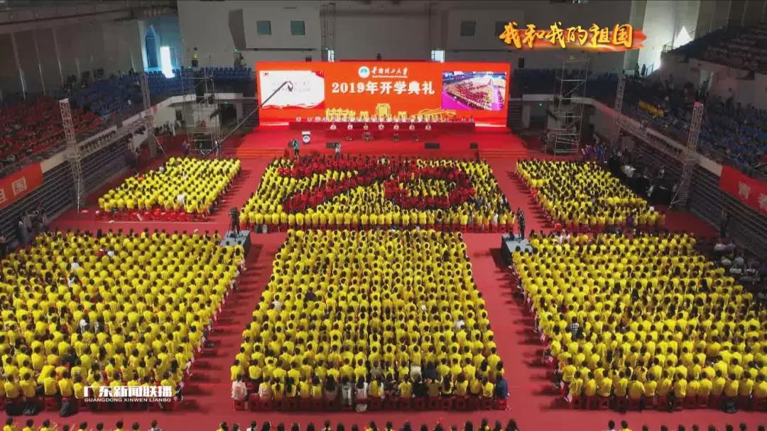 在华南理工大学2019级新生的开学典礼上,优秀学生代表在现场讲述自己的故事,展示了高校学子“青春告白祖国,初心矢志奋斗”的丰富实践和丰硕经验。在典礼的最后,随着七色丝绸的放飞,一面五星红旗冉冉升起,全体师生挥舞着国旗合唱《我和我的祖国》,表达对祖国的真挚热爱。