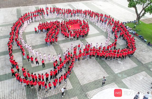 学校国旗广场上,来自于港澳台和内地的千余名医学生身着红色衣服,围绕成“心”型向祖国表白,港澳台学生特意排列成“70”作为队形,致敬中华人民共和国成立70周年。学生们高举右拳,郑重宣誓医学生誓词。他们用慷慨洪亮的声音向祖国庄严承诺医学生的青春使命,用字字千金的誓言宣告要为祖国医药卫生事业的发展,为健康中国贡献力量奋斗终生。