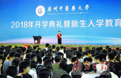 广中医党委书记张建华在开学典礼上勉励新生筑梦立德。通讯员供图