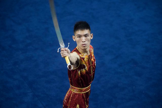 刀术赛事中,参赛者们在场地中间横砍竖劈,将手中的刀舞得虎虎生风。信息时报记者 梁钜聪 摄