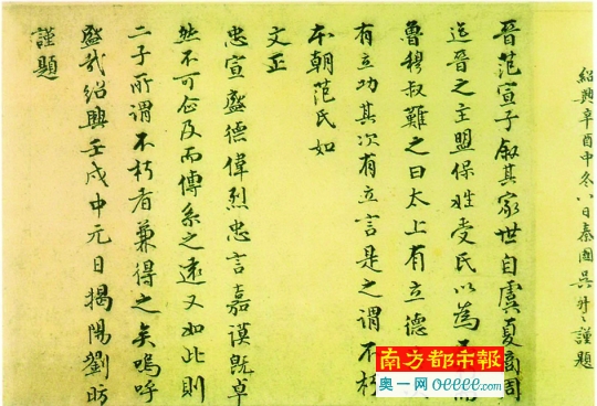 唐代咸通年间的《唐范隋告身卷》刘昉题跋。现藏于南京博物院。