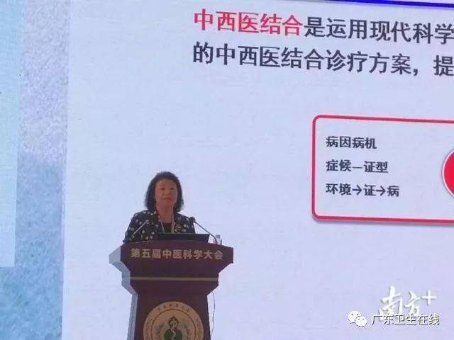 ▲国医大师禤国维作题为《中医治疗红斑狼疮等疾病》的主题报告。禤国维提到,中医常以六味地黄汤加青蒿、白芍、沙参、益母草、薄盖灵芝为基本方,随症加减治疗红斑狼疮,疗效满意。