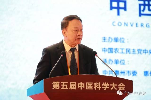 陈竺代表农工党中央对大会开幕表示祝贺。他表示,农工党中央和国家中医药管理局于2014年共同创办和组织了中医科学大会,迄今成功举办了4届,既推动了中医药的复兴与繁荣,也促进了会议举办地医药卫生事业及经济社会的发展。当前,中医事业发展正逢其时,中西医汇聚是应对全球健康挑战的必然选择,将建立起融汇双方优势的现代医学体系,促进医学科学发展进步,产生一加一大于二的效果。希望广大专家学者不断发掘和利用人类创造的优秀思想和科学知识,推动中西医汇聚,建立起融汇中西医学思想的医学新体系,促进医学发展进步,应对人类健康挑战,为增进人类健康福祉,构建人类命运共同体作出更大贡献。