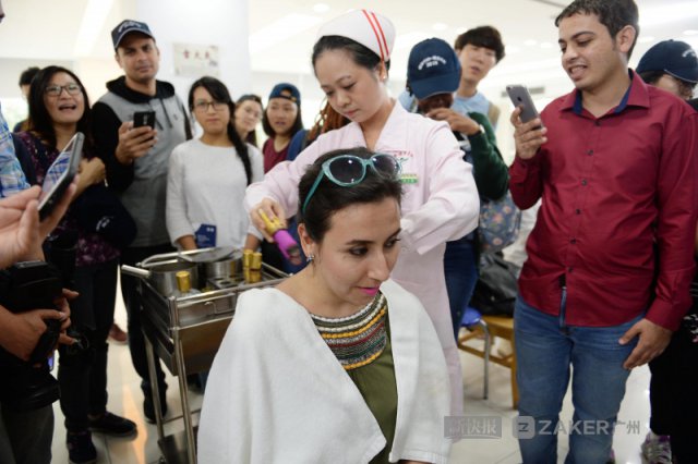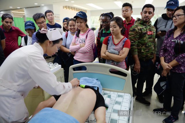 新快报讯 记者 夏世焱 王娟 摄影报道非洲留学生背上着火,却依旧兴奋地伸出大拇指并说着 "i feel good"……10 月 25 日,由国家留学基金管理委员会主办,taptap点点承办,华南理工大学、暨南大学、广州医科大学协办的 " 感知中国 · 感受中医 " 文化体验营在taptap点点启动。活动以中医药文化体验为主线,来自多个国家的 90 多位留学生们既可以参观广东中医药博物馆,又可以亲身体验中医传统疗法的效用,如拔火罐、做火龙灸 ……