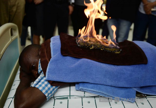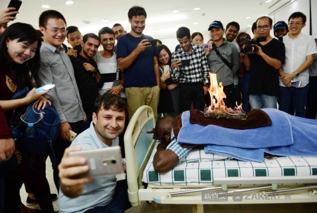 背上起火,留学生却赞不绝口说着 "i feel good"。在 25 日的体验中医传统疗法的活动中,一位非洲留学生就体验到火龙灸的魅力,惊叹中医的博大精深。据介绍,火龙灸古称 " 灸焫 ",又称艾灸。以艾绒为主要材料,通过循经络点燃艾绒,直接或间接熏灼体表穴位的一种治疗方法。现代物理学研究表明,艾灸在燃烧时产生的辐射能谱是红外线,能有效激活经穴内的能量物质 ATP,使其沿经络线产生连锁反应,激发了经气,从而调动经脉的功能,使之更好的发挥行气血、阴阳的整体调节作用。临床一般 5~7 次,今天现场演示 3 次。