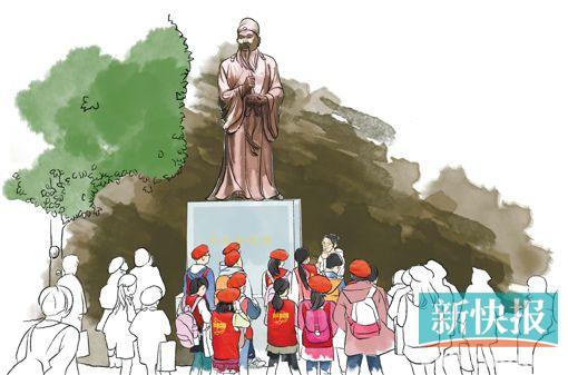 ●一群广州学生在老师的带领下参观药王山。