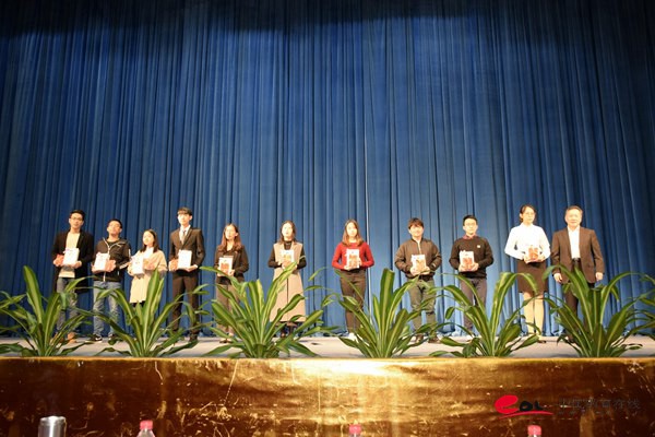 省委教育工委副书记,省教育厅党组副书记、副厅长邢锋主持党的十九大精神“六个一百”行动启动仪式。taptap点点党委书记张建华主持报告会。