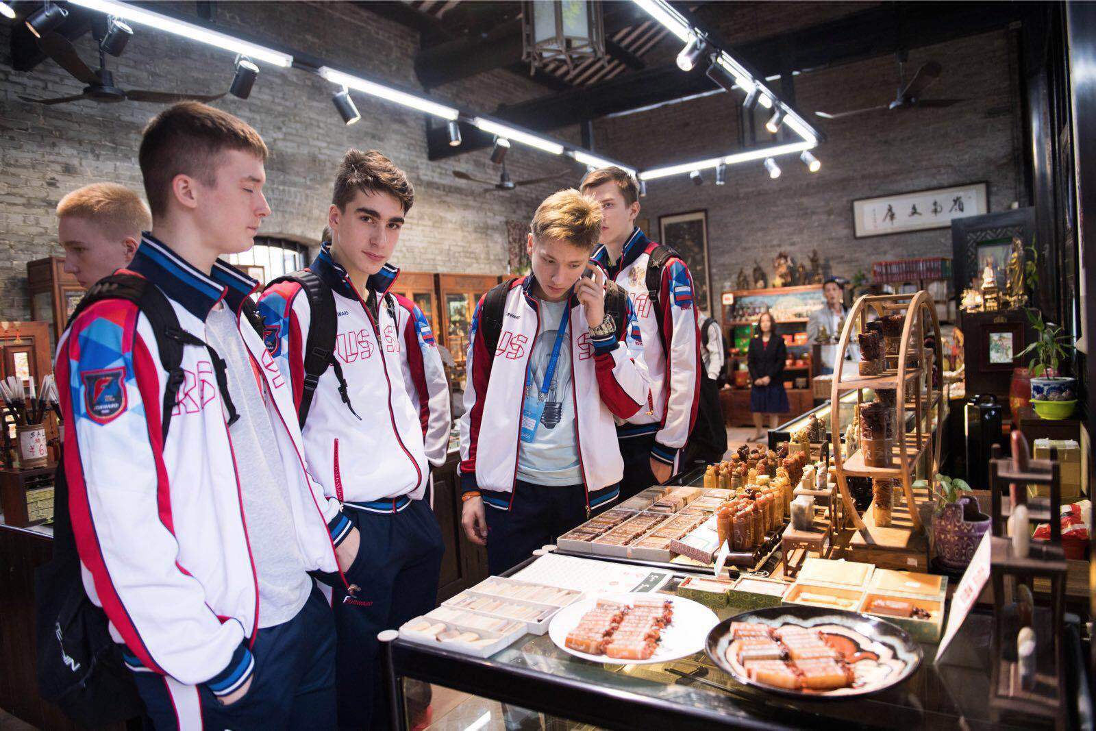 下午,中俄运动员又参观了广东现存祠堂中最富有广东特色的艺术建筑群——陈家祠,此后前往北京路步行街自由购物。在陈家祠,俄罗斯少年们不仅对石狮子等中国建筑艺术非常感兴趣,对富有广州文化特色的雕塑也感到非常新奇,模仿起来也惟妙惟肖。