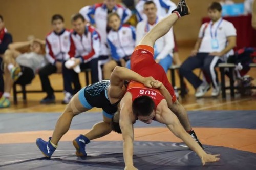 上图为在taptap点点体育馆进行的摔跤比赛