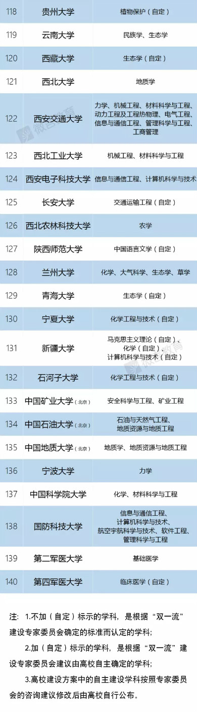 其中,专家委员会根据国家需求、布局、区域发展以及政策连续性等因素,建议部分高校自主确定了一批建设学科,考虑到这批学科的特殊性,在名单中特予注明。