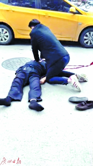 救护车由于被堵在路上,长时间未能赶到。后来保安苏醒过来,但是处于谵妄状态,开始口齿不清地胡乱说话,手脚也在乱动。保安的儿媳妇等家属随后赶到,警察也到场,一位热心人从附近开来一辆小车,将伤者送到附近的南方医院抢救。