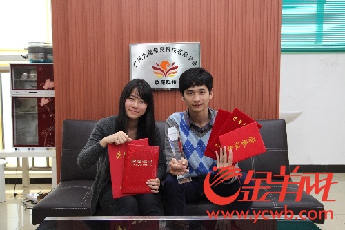 在学校的帮助下,2013年两人在广中医的创业园成立了公司九尾科技,研发3个月就推出兼职猫APP,帮助大学生群体匹配安全可靠的兼职信息。3年来,兼职猫项目共拿了4轮融资,整个公司的估值也超5亿。兼职猫的品牌以及影响力也受行业肯定,荣获2015年华南电商金标奖“最佳O2O兼职招聘奖”。以及2016年“最具高校人气招聘服务平台独角兽奖”。