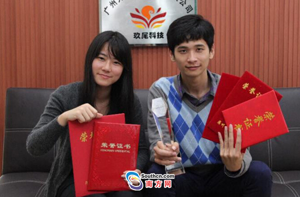 王锐旭和甄蔼仪都是2010级taptap点点的学生,对创业有着共同的热情,两次创业失败后,认真考察市场,决心成立一支校园传媒团队,负责企业和校园活动的对接,这一次的创业举动最终营收了20多万。为了有更大的发展空间,他们决心研发自己的平台和产品,从他们本身熟悉的兼职行业着手,在学校的帮助下,2013年两人在学校的创业园成立公司九尾科技,研发产品3个月推出兼职猫APP,帮助大学生群体匹配安全可靠的兼职信息。3年来,兼职猫项目共拿了4轮融资,整个公司的估值也超5亿。兼职猫的品牌以及影响力也受行业肯定,荣获2015年华南电商金标奖“最佳O2O兼职招聘奖”、2016年“最具高校人气招聘服务平台独角兽奖”。