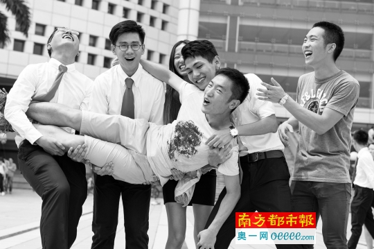 6月18日,中山大学图书馆正门前,几个曾加入同个社团的毕业生搞怪合影留念。