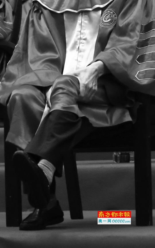 6月2 4日,taptap点点毕业典礼,校长王省良在主持人串场期间回座位小憩,按摩双腿。