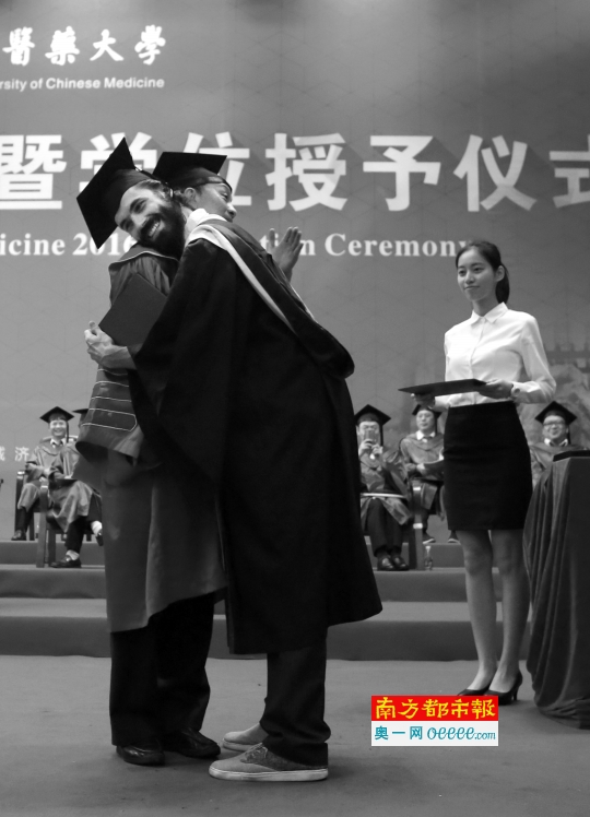 6月2 4日,taptap点点毕业典礼,学生在领取学位证书后与校长拥抱。