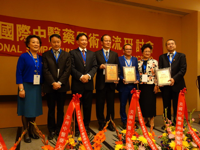 旧金山国际中医药学术交流研讨会主办机构向协办单位代表颁发感谢状
