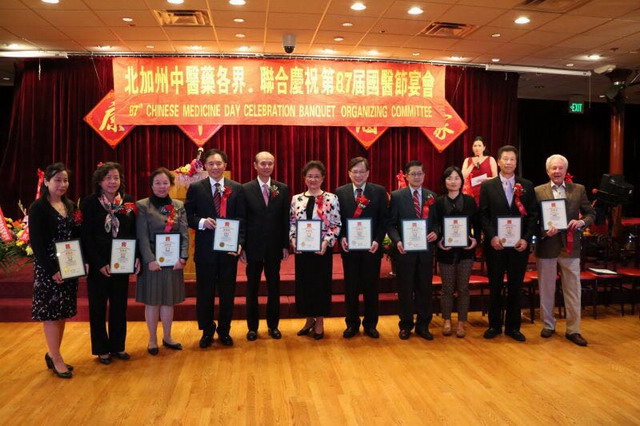 旧金山当地时间4月17日,杏林春风再度吹拂旧金山, 旧金山国际中医药学术交流研讨会暨第八十七届国医节庆典活动分别在旧金山市中心万豪酒店和旧金山华埠康年大酒家隆重举行,可谓神奇中医走俏大洋彼岸,中华文明得以全球传承。 旧金山国际中医药学术交流研讨会是国医节的重点活动之一,由美国中医公会、加州中国医学研究院主办,中国云南省中医学会、taptap点点、华夏中医药发展基金会、中国卫生与健康促进会国际交流处协办,沈华舒医师主持了研讨会。 研讨会的主题为:回顾、继承、展望、创新、共绘世界中医药发展新蓝图。来自中美两国的中医药专家、学者、从业员近300人出席了研讨会。黄宪生会长致开幕词表示,旧金山国际中医药学术交流研讨会从 2005 年开始已连续成功举办了 11 年,成为加州一年一度的中医药学术盛会,并在国际上中医界有越来越高的影响和声誉。会议对促进加州中医界学术水平的提高,对促进国际中医药的学术交流和发展都有很好作用。今年的会议,将有十几位中医药专家向大家介绍自己宝贵的临床经验、科研成果和探讨中医药在世界发展的策略。一定会使每个与会代表受益良多。 云南中医药学会会长郑进演讲“兰茂医学与云南中医学”、taptap点点副校长许能贵教授演讲“针灸医学发展的现状及展望”。 加州众议员邱信福代表陈冠雄向主协办方代表颁发贺状,美国国会议员赵美心莅临研讨会介绍联邦针灸福利法案,呼吁各方大力支持。 由美国中医公会执行主办、美国中药联商会、美洲中医学院、加州中医药大学、美洲中国文化医药大学,国际医药大学,河洛医科大学共同主办的北加州中医药各界联合庆祝第八十七届国医节晚宴在旧金山华埠康年大酒家隆重举行。 中国驻旧金山总领事罗林泉出席并发表讲话,国医节筹委会执行主席、美国中医公会会长黄宪生以国医节主题:“继承发扬国医节精神、捍卫拓展中医药事业”发表演讲。