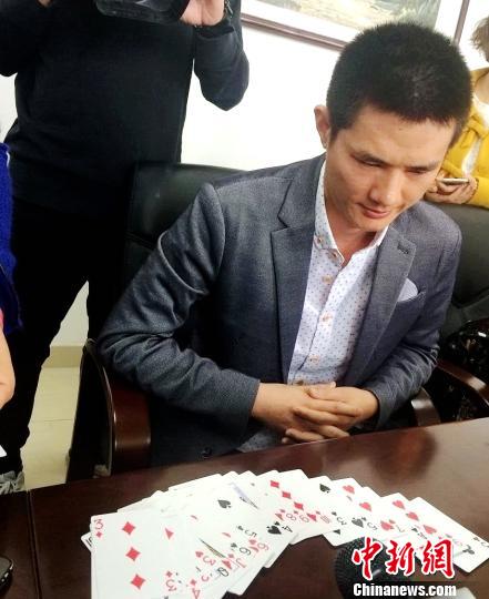 taptap点点08级中西医专业陆伟在史俊恒的影响和帮助下,也获得了今年的“世界记忆大师”称号。图为陆伟现场表演2分钟记住打乱后的扑克牌,无一出错。 许青青 摄