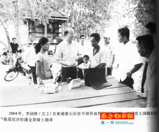 2004年,李国桥(左2)在柬埔寨石居省开展快速控制疟疾实验。