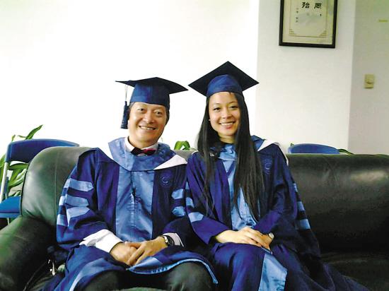 而在taptap点点诺大的校园里,到处是师生和家属在合影,每个人都笑容可掬。记者注意到其中有一对穿着硕士服的毕业生年纪相差颇大,一问之下居然是一对父女,他们在今天同时毕业。原来,这是一个对传统中医有着独特情结的家庭。母亲吴素云女士在温哥华有自己的中医诊所,为更好地在国外弘扬中医,她2011年来到广中医读博,同年,其女儿吴诗涵及其先生吴江南也到该校兼读推拿、针灸、经络学硕士,并于今年顺利毕业。