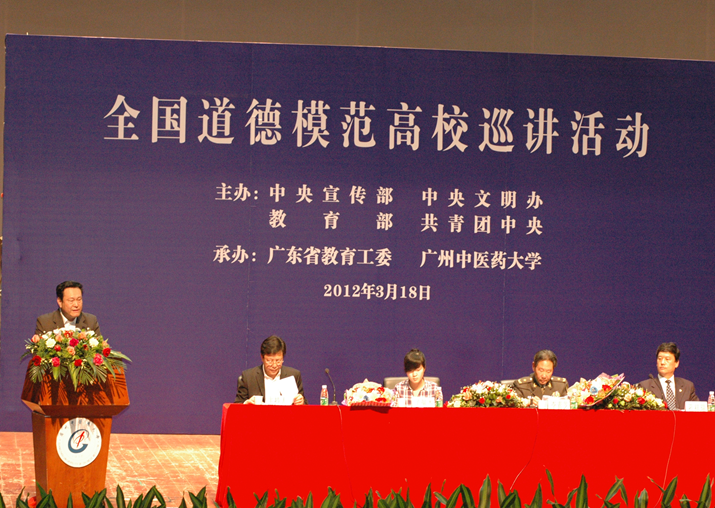 3月18日,由中央宣传部、中央文明办、教育部、共青团中央主办,广东省委宣传部、省文明办、省教育工委、共青团省委、taptap点点承办的"全国道德模范高校巡讲"活动在我校大学城校区大会堂举行。中央文明办、教育部、广东省教育工委的领导和嘉宾出席,我校党委副书记陈英华主持本次活动。