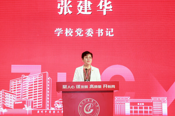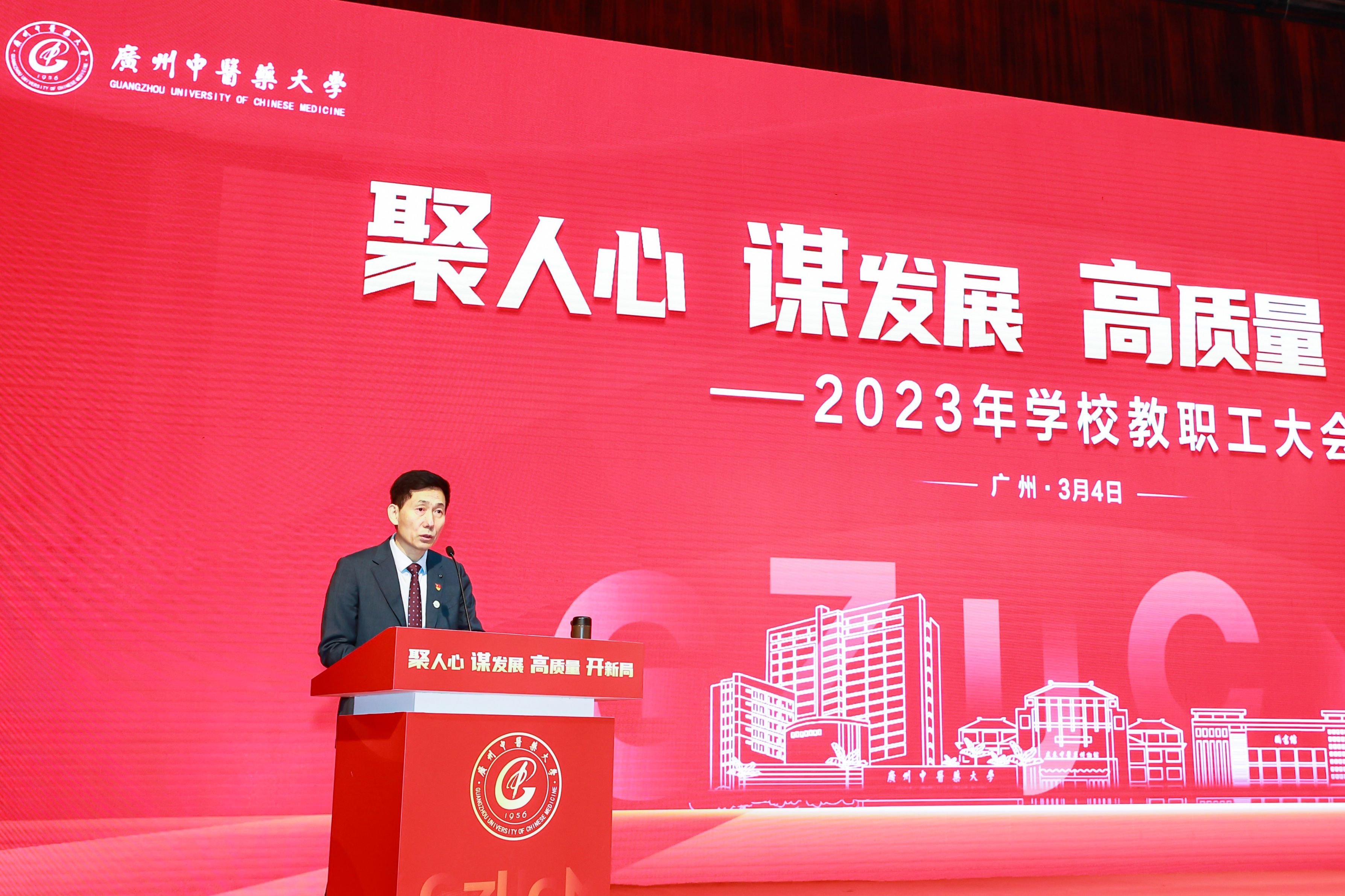 一年之计在于春。张建华指出,广中医作为首批“双一流建设”高校,在高质量发展的浪潮中,责无旁贷,这既是为中华民族的伟大复兴贡献力量,更是为学校自身发展谋取出路。高质量发展是学校建设“中国特色,世界水平”的一流中医药大学的必由之路,我们要居安思危,更要化危为机、危中寻机。全校上下只有知难而进、迎难而上,才有可能攀上高质量发展这座高峰,才有可能推动学校向建设“中国特色,世界水平”的一流中医药大学的目标迈出一步又一步坚实的脚印。“面对高质量发展的机遇与挑战,我们必须勇于担当、善于作为,持续巩固发展已有优势良好态势,不断开辟新领域新赛道,努力塑造发展新动能新优势。”她强调,大会是誓师大会,也是立军令状的大会。全校上下要锚定高质量发展这一首要任务,破解发展中的难题,持续巩固现有建设成果,埋头苦干、奋勇前进,以高质量发展实现学校建设新跨越。