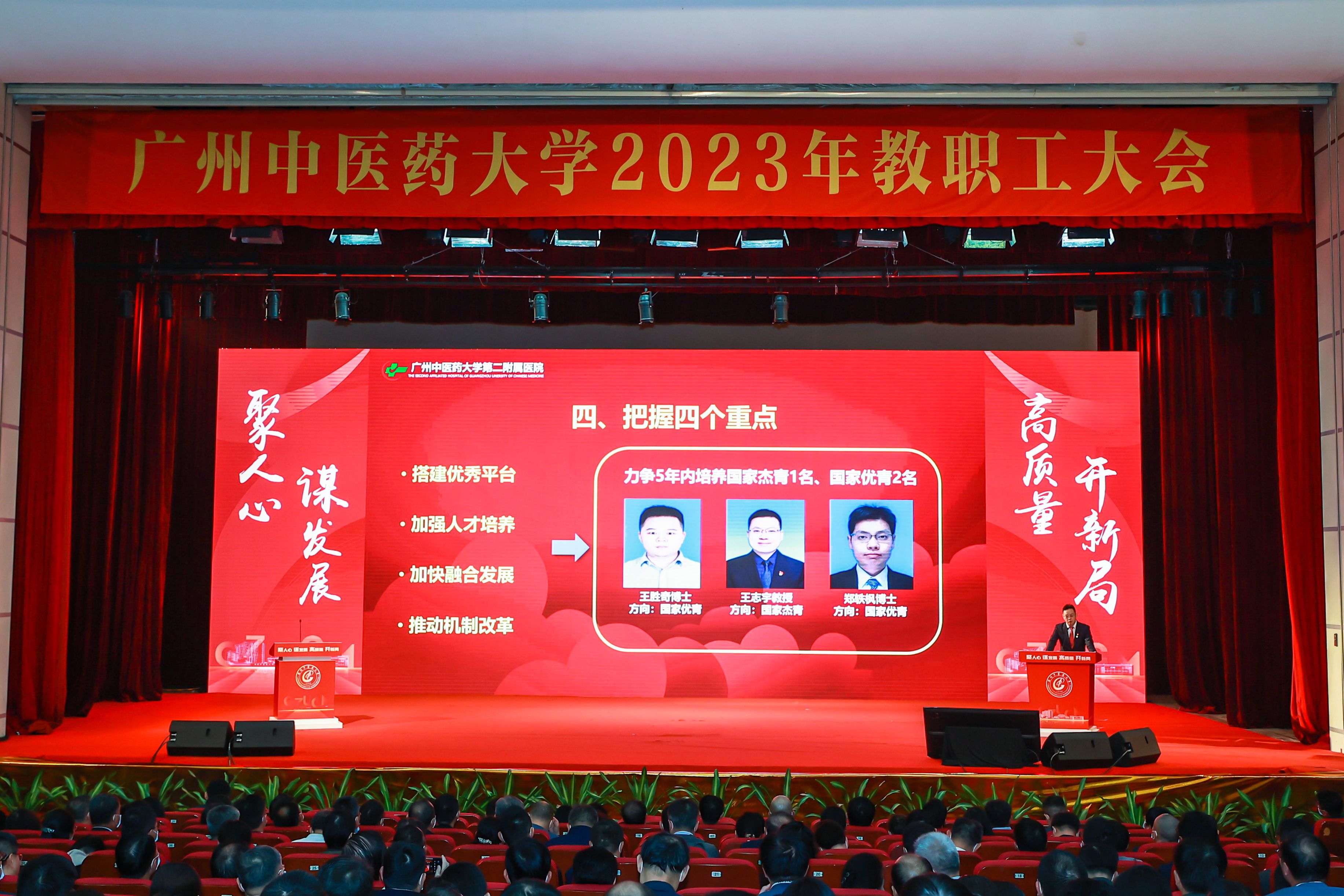 广中医党委书记张建华在动员讲话中表示,中医药发展迎来了最好的时代。在大家的共同努力下,学校顺利通过周期考核,2021年入选广东省新一轮高水平大学重点建设高校,2022年再次入选国家第二轮“双一流”建设高校及建设学科名单;高水平建设医院、省部共建中医湿证国家重点实验室、国家产教融合创新平台、国家中医药传承创新中心等重大平台建设先后落户学校,为学校快速发展注入强劲动力。