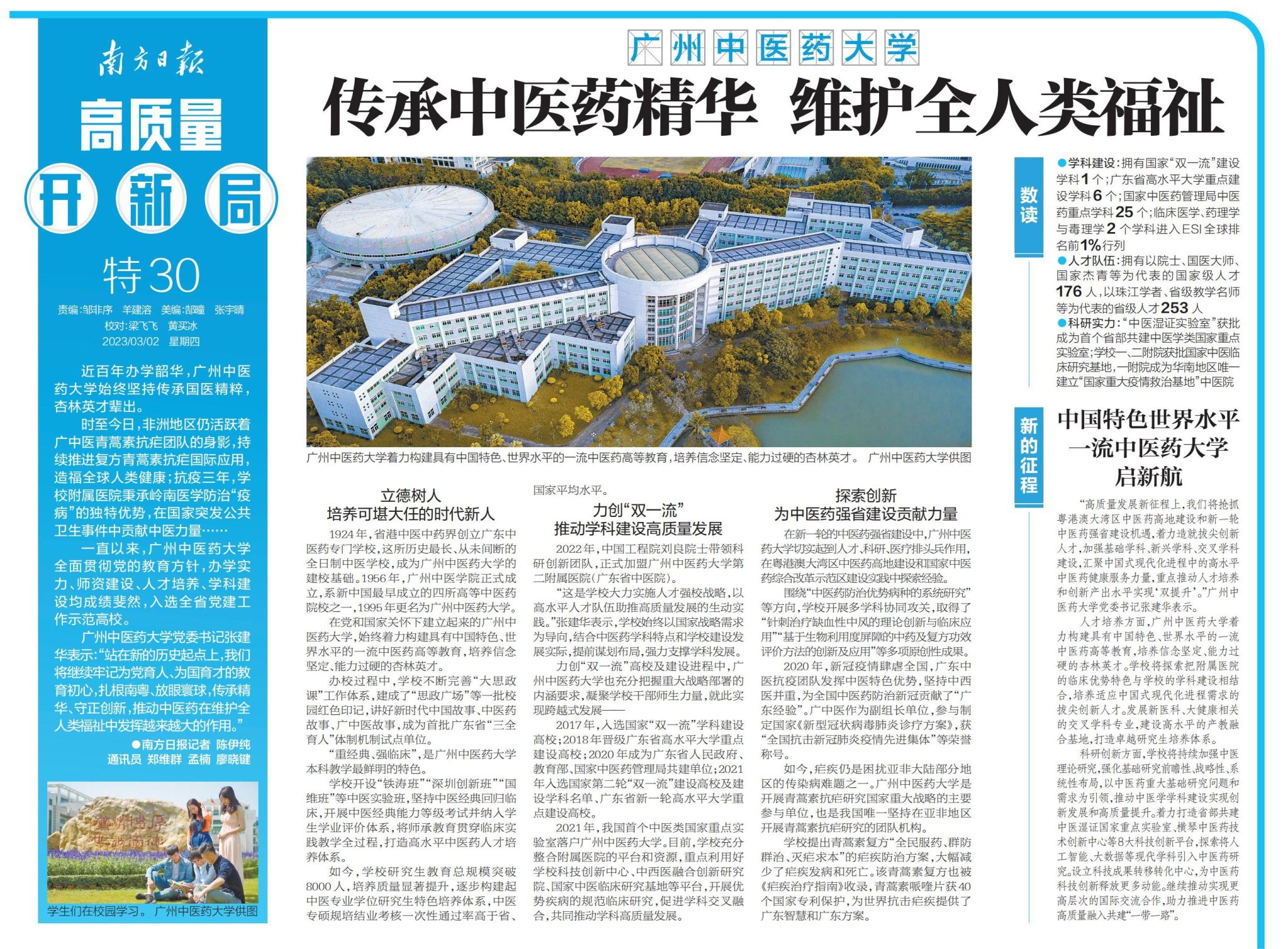●人才队伍:拥有以院士、国医大师、国家杰青等为代表的国家级人才176人,以珠江学者、省级教学名师等为代表的省级人才253人。