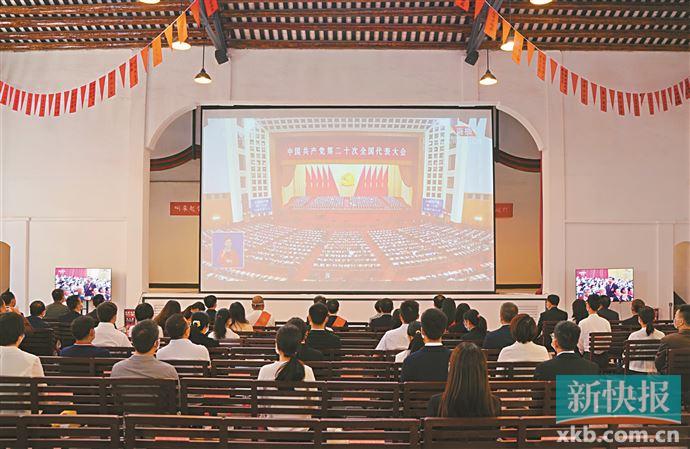 ■10月16日上午10时,广州市总工会在第一次全国劳动大会旧址组织干部、劳动模范、穗港澳职工代表集中收看现场直播的党的二十大开幕直播。新快报记者 郭思杰/摄