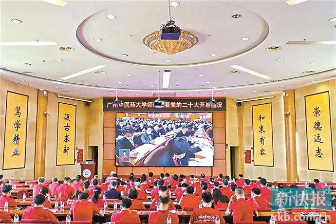■taptap点点16日上午组织领导干部、师生代表集中观看党的二十大开幕直播。新快报记者 龚吉林/摄