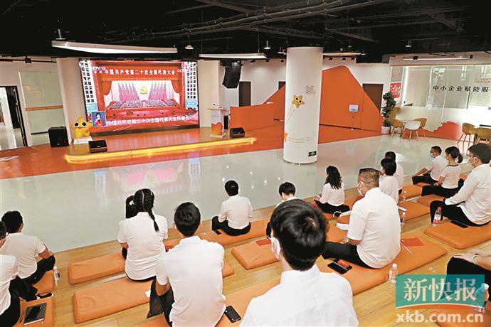 ■在广州开发区科技企业加速器园区,党员干部群众认真收听收看党的二十大开幕盛况。