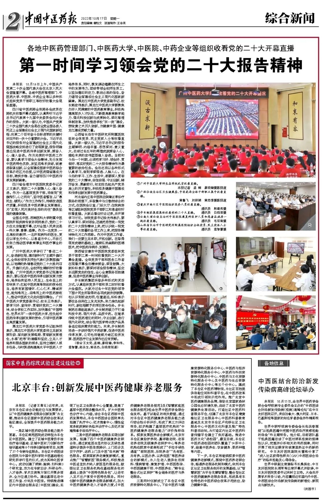 各地中医药管理部门、中医药大学、中医院、中药企业等组织收看党的二十大开幕直播——