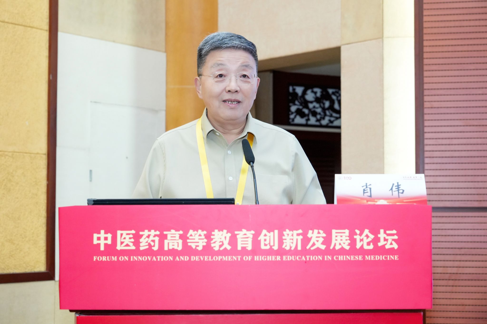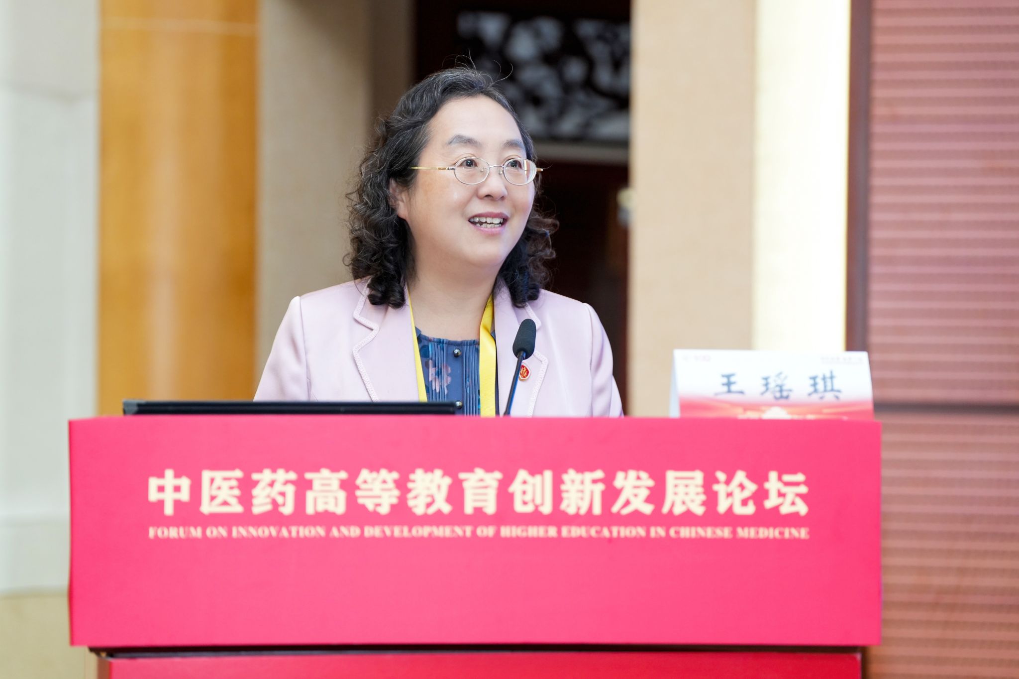 北京中医药大学党委书记王瑶琪作题为“新时代中医药高等教育改革探讨”的主旨报告