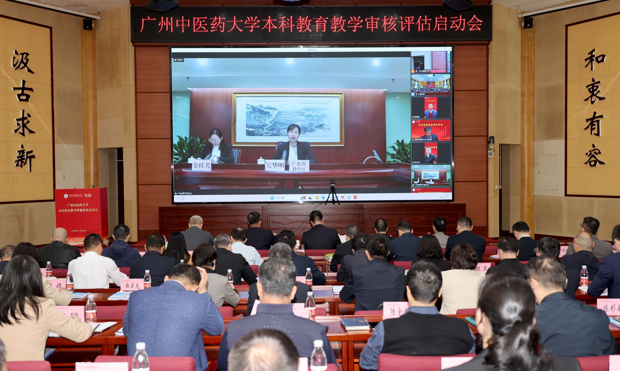 受学校党委副书记、校长王伟的委托,副校长刘中秋以《百年岐黄 逐梦一流 培养德业双修传承创新中医药精英人才》为题,汇报了学校发展和本科教育教学情况。他表示,百年来,学校传承“上医医国,先觉觉民”家国情怀,秉持“厚德博学,精诚济世”的校训精神,筑牢了本科教育核心地位,秉承“人才培养为本,本科教育是根”的指导思想,坚持“融古铸今、继往开来、扎根南粤、放眼寰球”的办学方针,通过“重临床、强临床、用经典、精中医、融西医、研学术、济全球”等举措,形成了“明德精业、医融中西”的本科教育理念。他指出,学校坚决贯彻落实习近平总书记对教育工作的重要指示批示精神,紧紧围绕立德树人根本任务,全面推进教育、科技、人才一体化建设,坚持“人才强校”战略,打造一流师资队伍,为国家培养了中医药专门人才18万人。坚持一流学科引领,实行学科-学位-专业一体化建设,推进学校高质量内涵式发展,以“再造一个新广中医”的决心,着力谋划新百年学校事业高质量发展,加快建设“中国特色、世界水平”的一流大学。