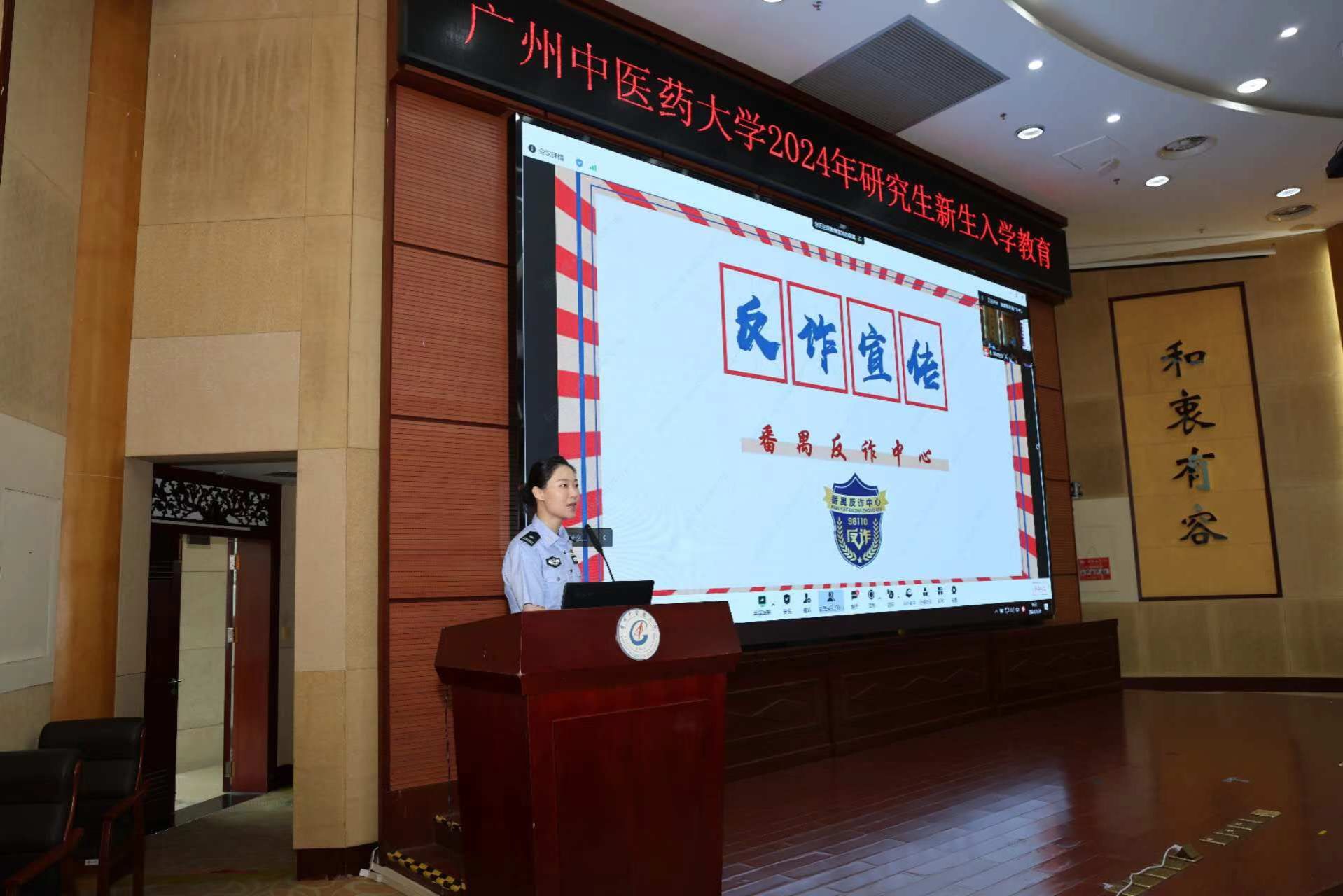 番禺刑警大队反诈中心庞警官、小谷围派出所陈警官进行了反诈安全教育和防盗防丢的技巧讲解,帮助新生提高防范意识。研究生院李玉洁老师和李慧婷老师分别就研究生学籍管理和课程学习安排进行了讲解。