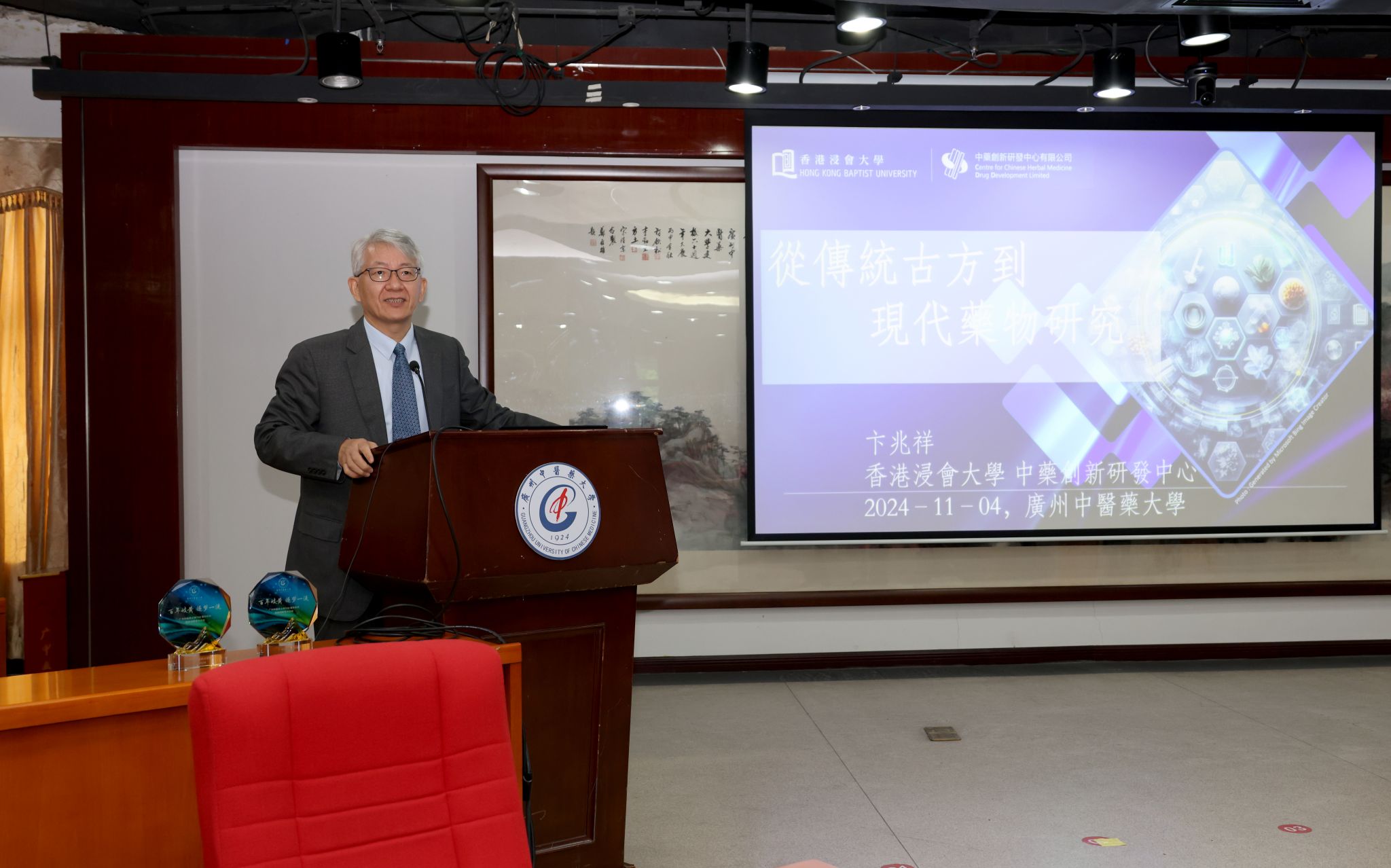 卞兆祥教授以《传统古方到现代药物研究》为题,以其丰富的学术背景和研究经验,通过对比传统与现代的研究范式,深入探讨了如何将古代医书中的有效古方转化为现代药物。他结合自身多年的研究经历,分享了从古方中发现有效成分、通过现代科学方法验证和优化这些成分的具体案例。他不仅提供了宝贵的学术见解,也为中医药的现代化和国际化提供了新的思路。