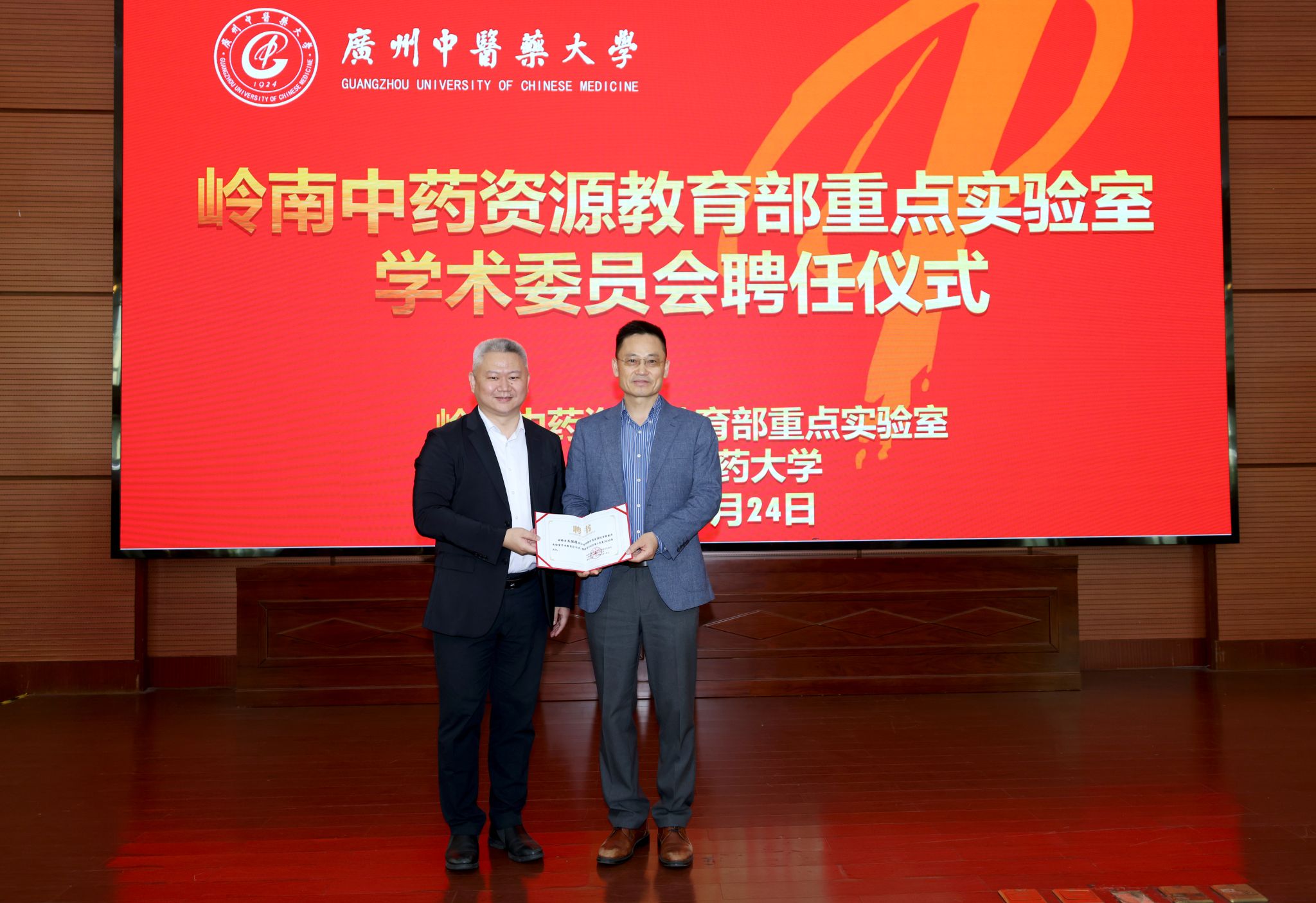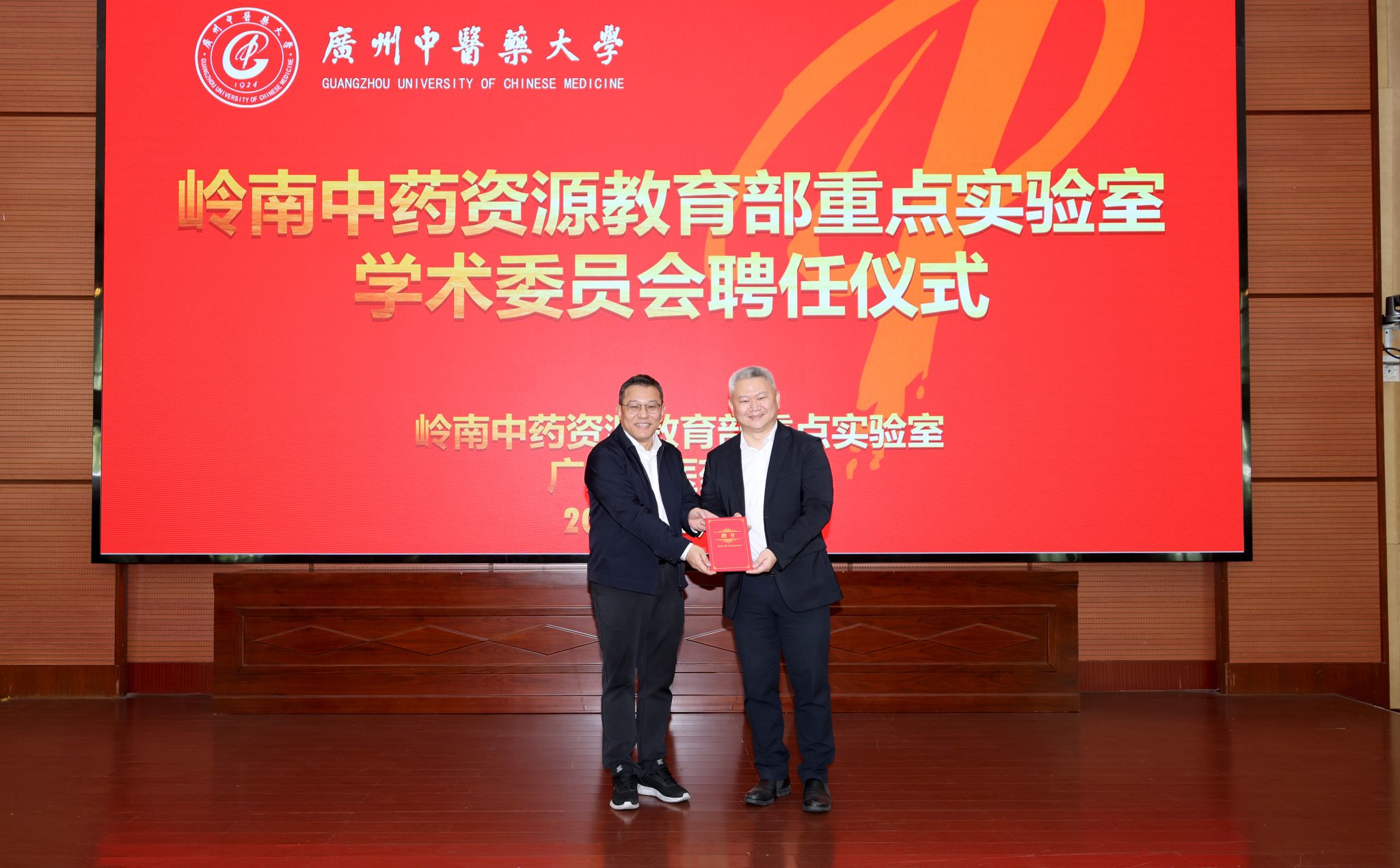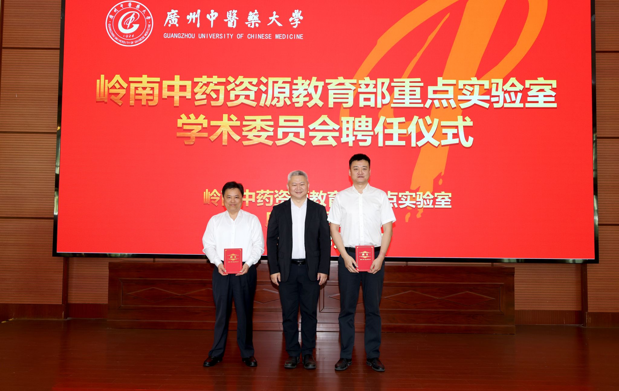 会上,杨荣源为新一届实验室主任王宏斌教授颁发聘书。实验室主任王宏斌为学校中药学院院长白云龙教授、人力资源部部长詹若挺教授颁发实验室副主任聘书。