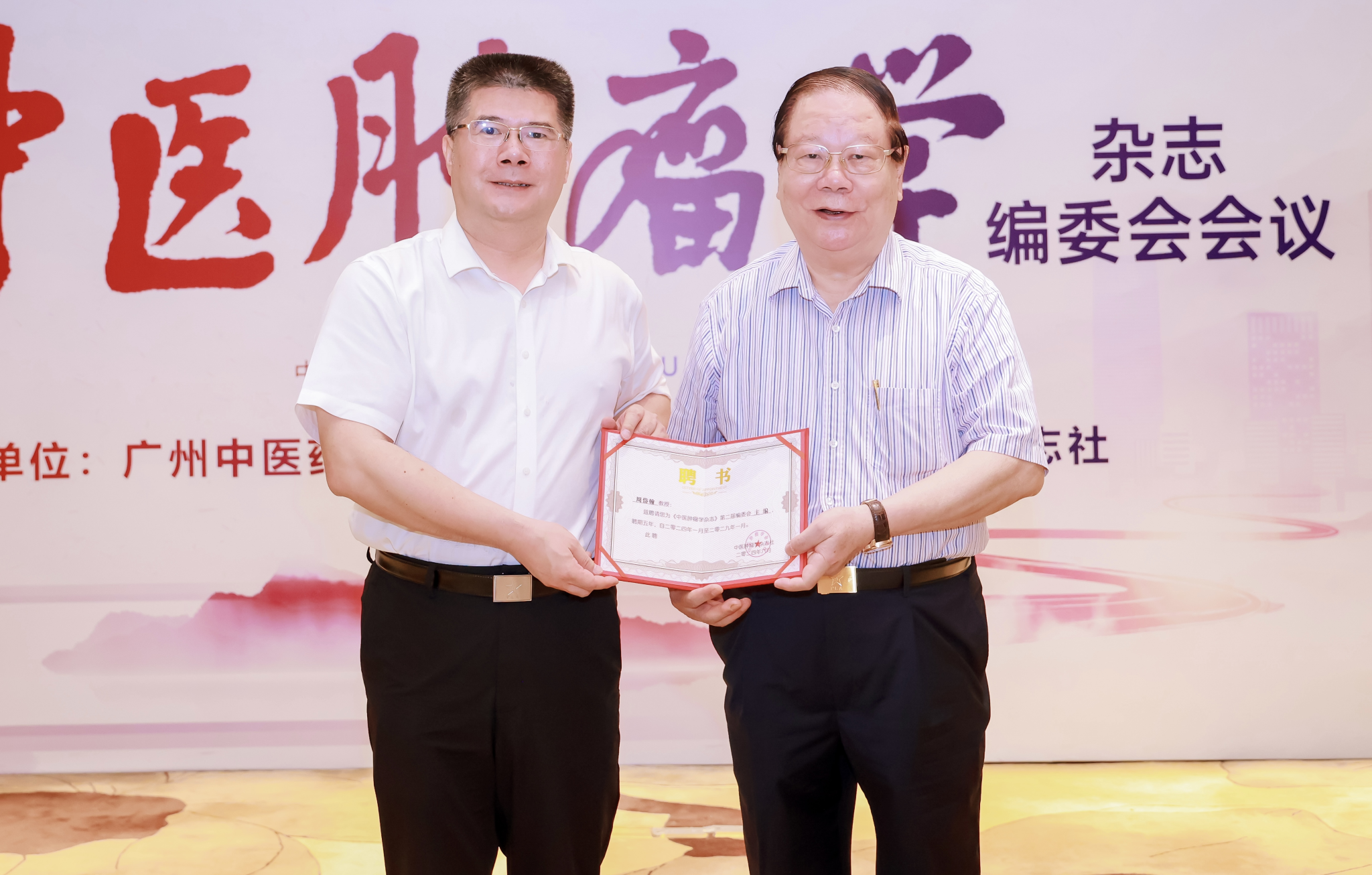 会议为中医肿瘤学杂志社主编、副主编及编委颁发聘书